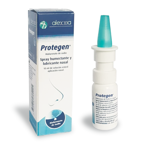 Además de narices secas, debido a sus propiedades específicas, … en resfriados… y protege de nuevas infecciones. Protegen también es adecuado como tratamiento de apoyo para la rinitis (alérgica). Por lo tanto, también usa junto con otros aerosoles como los descongestionantes y corticoides. Sin embargo, debe haber un intervalo de tiempo de 30 minutos entre el uso de cada uno. Siempre use el dispositivo Protegen después del primero aplicado, sea descongestionante o antinflamatorio.